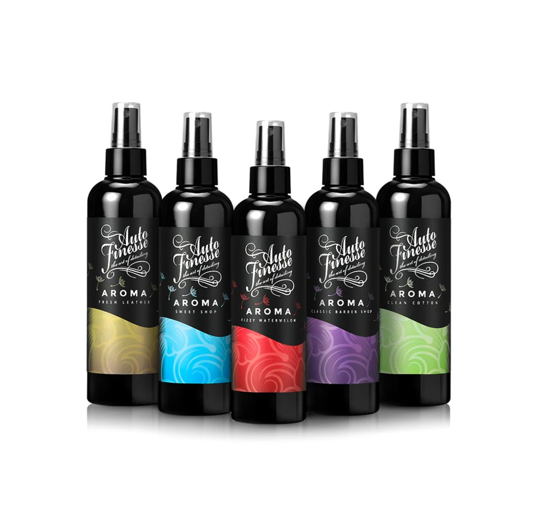 AutoFinesse Aroma er hágæða frískandi ilmsprey sem bætir ilm og andrúmsloft í hvaða innanrými sem er. Þessi ilmsprey voru upphaflega hönnuð fyrir fagfólk í bílaþrifum og tryggja notarlegan ilm sem endist – án þess að vera yfirþyrmandi.