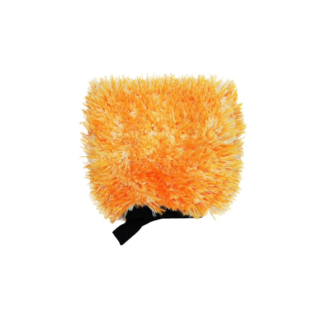 - Mini wash mitt slips over fingers for controlled detailing